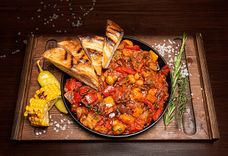 370 г • Баранина, помидор, лук репчатый, шампиньоны, перец болгарский, зелень